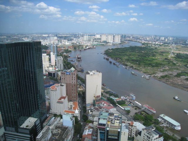 この川はサイゴン川といい右側に見える対岸がこれから商業用、住宅用、リゾートに開発される計画があります。もとは住宅があったのですが立ち退かせて開発するということ。そういうことは共産国しかできません。