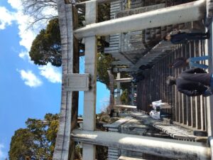 本殿は改修工事中で、仮本殿は今年が最後です。見納めですので、しっかり見ておきましょう。お参りは三が日以降だったので参拝客はそんなに多くありませんでした。