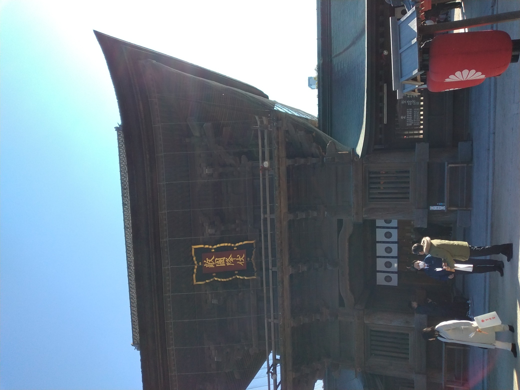 本殿に入る門ですが、日の丸2本が目出度く感じてしまいます。